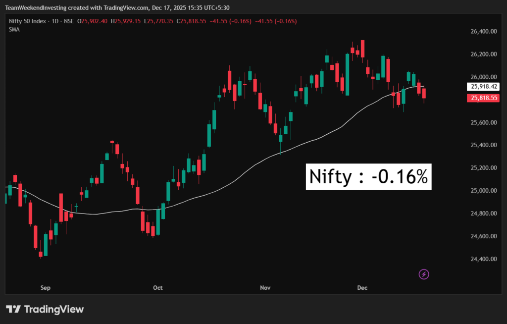 The market remained very dull on today, losing some ground as it transitioned into what appears to be an inactive holiday season. While commodities, metals, and the PSU banking space show some activity, the broader market is currently defined by inaction and lethargy.