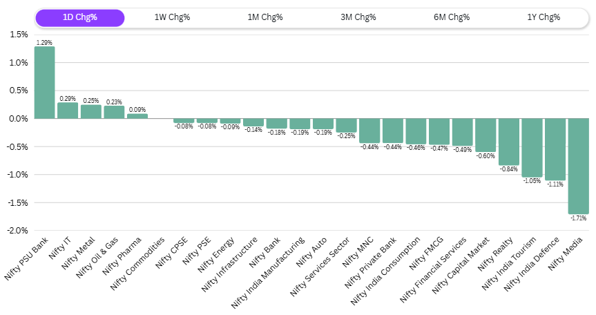 In the Nifty Next 50, green was seen primarily in commodities and PSU banks, while most other sectors faced broad distribution and selling pressure.