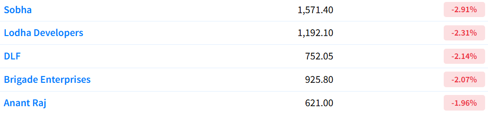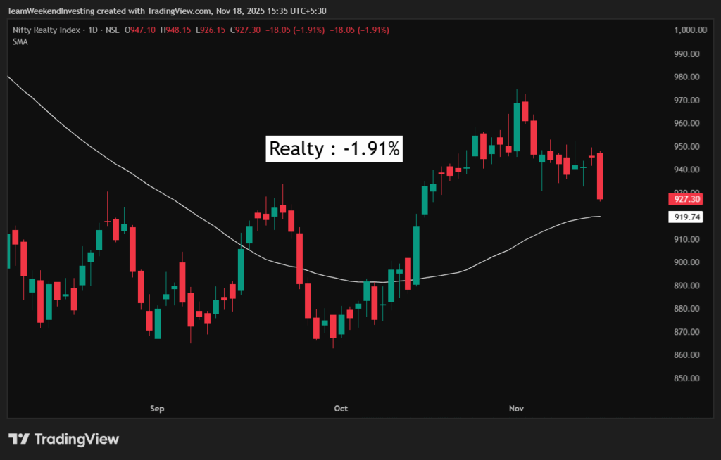 The rally in the real estate space, which began at the end of September and beginning of October, seems to be giving way now, with the index reverting back to its average. Stocks like Sobha, Lodha, DLF, Brigade, and Anant Raj all lost ground today.