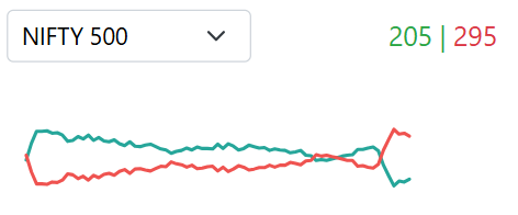 The advance-decline ratio of the market was weak throughout the day, with just 205 advancing stocks against 295 declines.