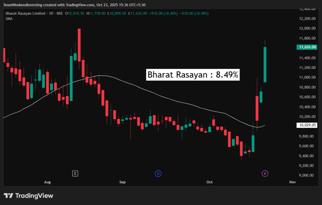On the other hand, Naukri jumped nearly 4.8% along with Bajaj Holdings and Bharat Rasayan, which rallied strongly after news of a potential stock split and bonus issue.
