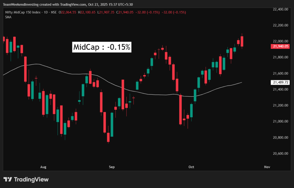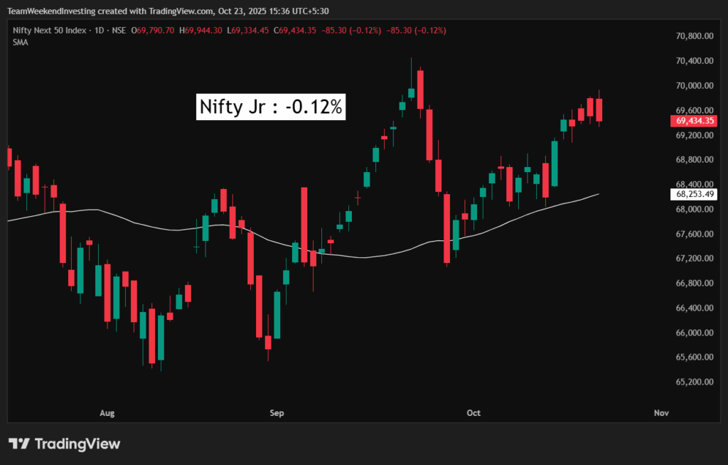 The Nifty Junior did not show any major movement either, staying within the previous day’s range and closing marginally lower at -0.12%.