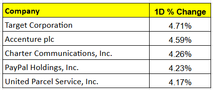 Stocks like Target Corp, Accenture, Charter Communications, PayPal, and UPS were going up. The disclaimer states that the Weekend Investing US portfolio could hold some of these stocks, and these are not recommendations.
