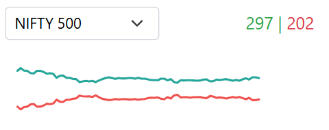 The market breadth was decent today, with 297 advances against 202 declines. Mid-morning saw a dip, but the market stabilized afterward.