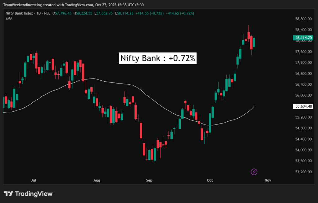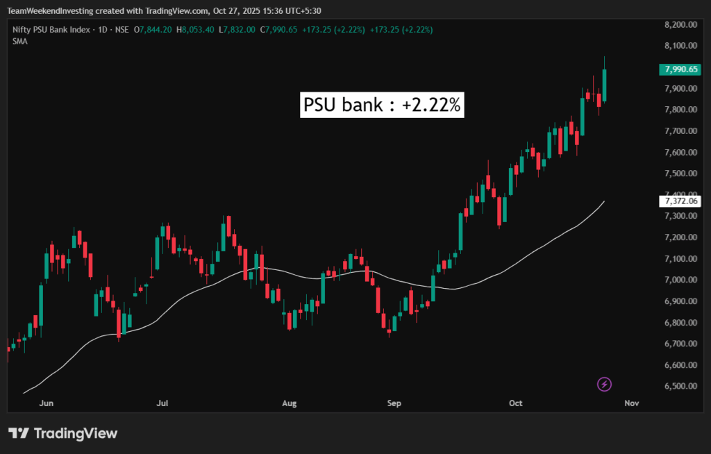With PSU banks at new highs and strong gains in major names like Bank of India, Canara Bank, Bank of Baroda, PNB, and SBI, the overall momentum looks healthy.