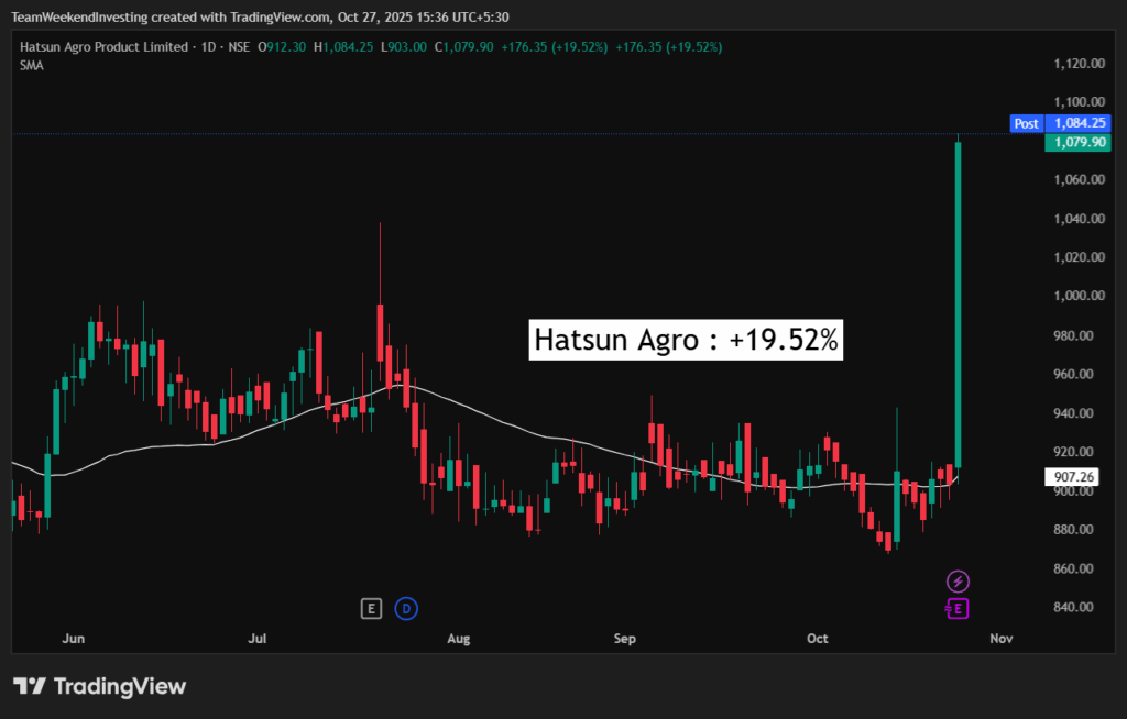 Among individual movers, Hatsun Agro rose 19.5% after strong quarterly results. The stock had been struggling for a while, so this move caught the market by surprise.