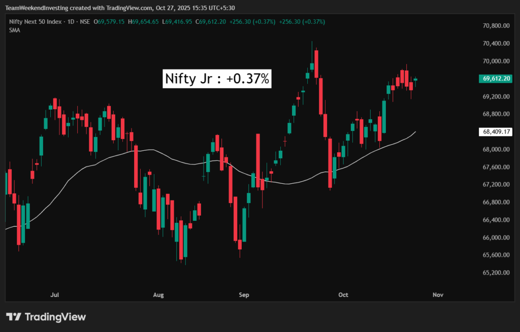 The Nifty Junior also closed at a four- or five-day high, showing that after several sessions of weak closes, the trend is improving. It ended at 69,612, up by 0.37%.