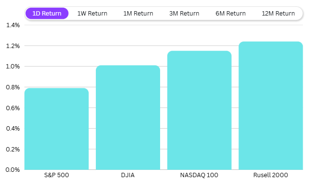 Globally, the U.S. markets also did very well in the previous session — the Dow Jones was up 1%, NASDAQ gained 1.2%, and the Russell 2000 rose 1.25%.