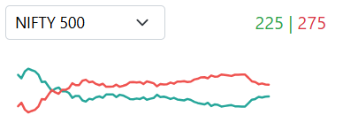 The advance-decline trend today showed early strength, but by the end of the day, it settled flat, with 25 advances and 75 declines.