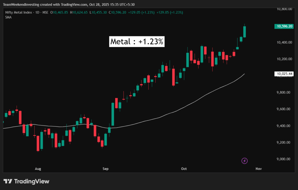 Metals, however, continue to shine, with Jindal Steel, Tata Steel, JSW, and SAIL all performing strongly.