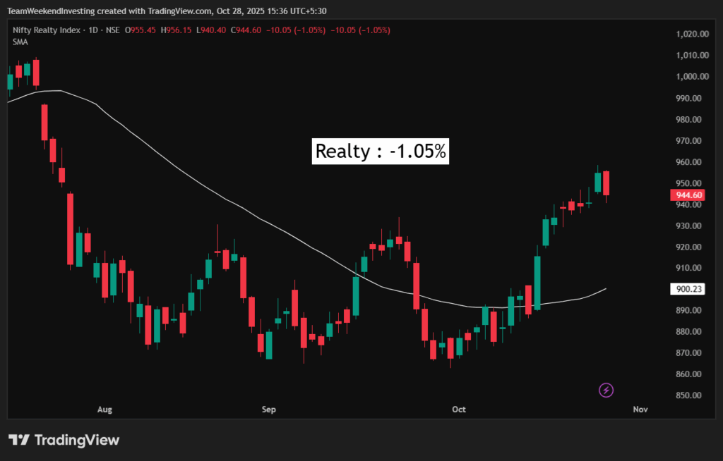 Over the last month, PSU banks have done extremely well with 11.3% gains, and Nifty Capital Markets are up 11.46%. This is quite a turnaround considering the fear seen just after the last expiry. Real estate stocks were slightly down today, but the sector still looks better than most others.