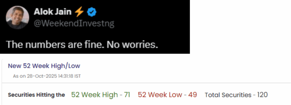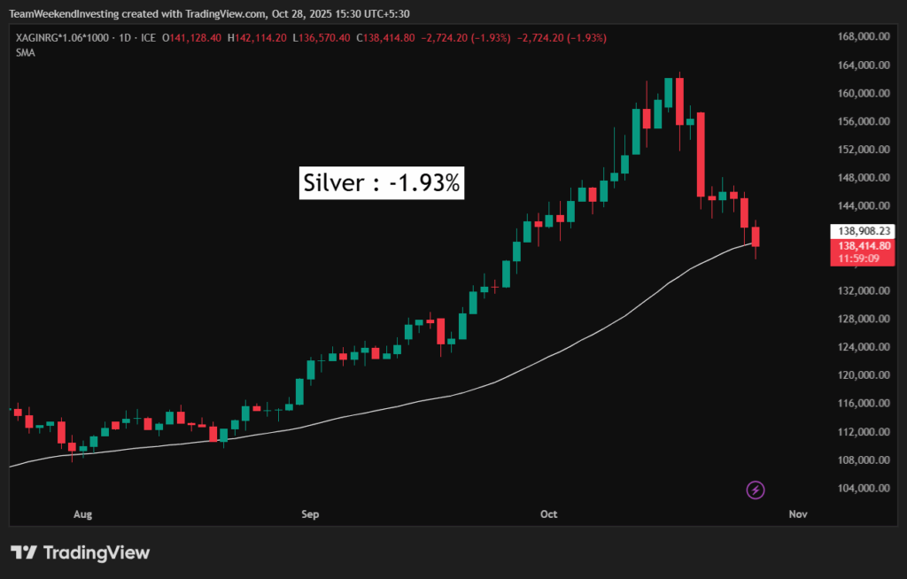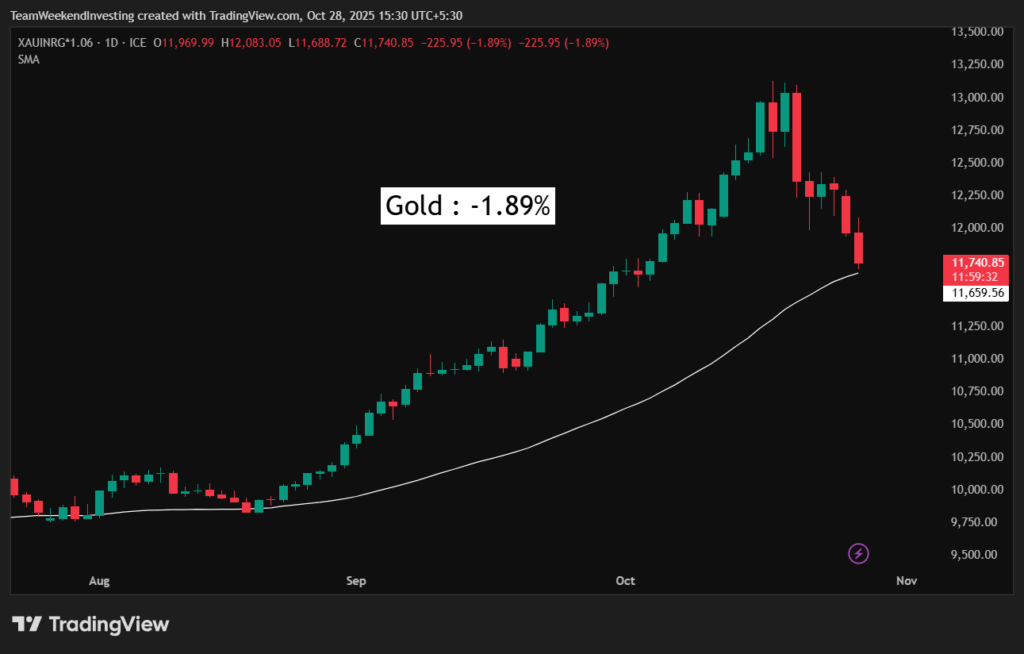 Gold continued to slide, now at ₹1,17,400 for 10 grams, which seems like a reasonable level to start nibbling if you believe in the long-term story. Many people think gold has peaked and is done for the next few years, but I don’t believe so. Central banks are playing an active role in buying gold, and that won’t stop anytime soon. Every time gold dips, they come in as big buyers. So don’t get trapped into thinking gold is finished for good. It might just be resting before another move up.