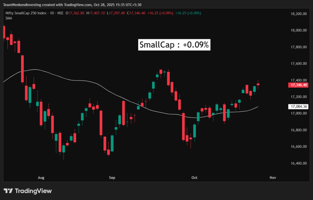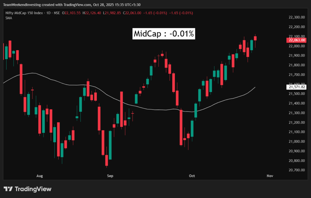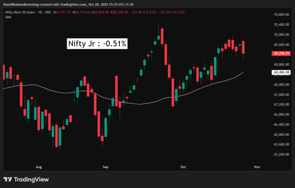 Nifty Junior was down half a percent and hasn’t moved much in the last eight sessions.
