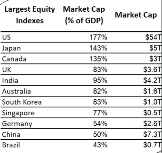 If the US market cap were to fall by just one-third, the market cap of the US would come more in line with its share of global GDP. In simple words, the US would not be dominating global stock markets as heavily as it does today. Right now, the US stock market is standing very tall compared to the rest of the world, and some kind of balancing is expected over the coming years.